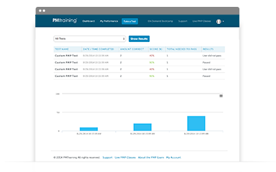 Receive reports that grade your performance by each subject area of the PMI-ACP exam. These reports provide test-taking trends over a period of time, including previous test results.